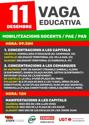 Calendario de movilizaciones para la huelga educativa del 11 de diciembre