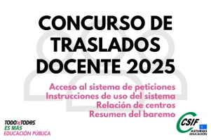 Concurso de traslados docente 2025. Acceso al sistema de peticiones, relación de centros, resumen del baremo