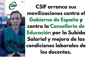 CSIF arranca sus movilizaciones contra el Gobierno de España y contra la Conselleria de Educación por la Subida Salarial y mejora de las condiciones laborales de los docentes.