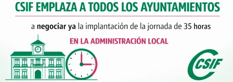 CSIF EMPLAZA A TODOS LOS AYUNTAMIENTOS A NEGOCIAR YA LA IMPLANTACIÓN DE LA JORNADA DE 35 HORAS EN LA ADMINISTRACIÓN LOCAL