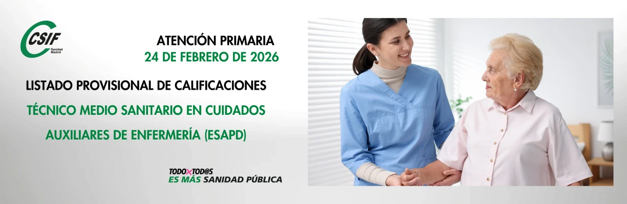 Listado provisional de calificaciones del proceso para cubrir 3 puestos de Técnico Medio sanitario en Cuidados Auxiliares de Enfermería (ESAPD)
