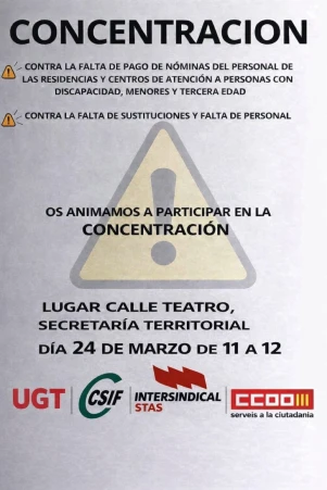 CSIF convoca una nueva concentración para protestar por la situación de los trabajadores de las residencias de la Conselleria de Servicios Sociales