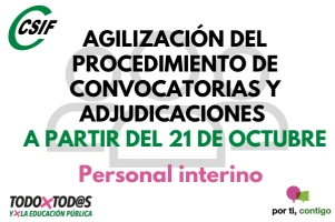 Agilización del procedimiento de convocatorias y adjudicaciones del personal interino a partir del 21 de octubre