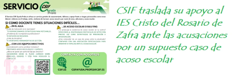 CSIF traslada su apoyo al IES Cristo del Rosario de Zafra ante las acusaciones por un supuesto caso de acoso escolar
