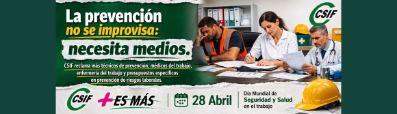 CSIF alerta de un grave problema de salud laboral y reclama más recursos y presupuesto en PRL con motivo del 28 de abril: “La prevención no se improvisa: necesita medios”