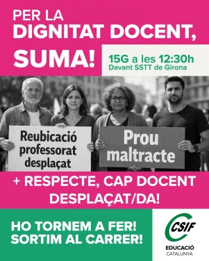 CSIF convoca una concentració el 15 de gener, a Girona, pels docents desplaçats