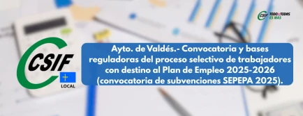Ayto. de Valdés.- Convocatoria y bases reguladoras del proceso selectivo de trabajadores con destino al Plan de Empleo 2025-2026 (convocatoria de subvenciones SEPEPA 2025).