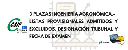 3 plazas Ingeniería Agronómica.- Listas provisionales admin-excl., designación Tribunal y fecha de examen