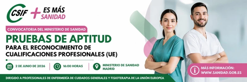 Sanidad convoca pruebas de aptitud para el reconocimiento de cualificaciones profesionales de Enfermería y Fisioterapia de la UE