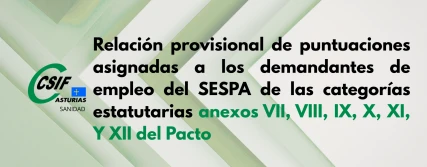 Relación provisional de puntuaciones asignadas a los demandantes de empleo del SESPA de las categorías estatutarias anexos VII, VIII, IX, X, XI, Y XII del Pacto