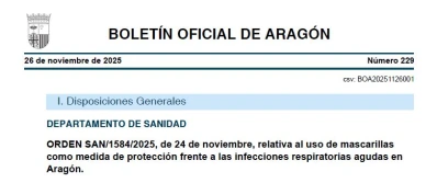 Orden sobre el uso de mascarillas como medida de protección frente a las infecciones respiratorias agudas