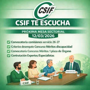MS 12-3-2026.-Convocada mesa sectorial para tratar: Convocatoria comisiones servicio 26-27, Criterios desempate Concurso Méritos discapacidad, Convocatoria Concurso Méritos 1 plaza de Órgano, Contratación Expertos/Especialistas