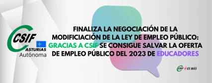 FINALIZA LA NEGOCIACIÓN DE LA MODIFICIACIÓN DE LA LEY DE EMPLEO PÚBLICO: GRACIAS A CSIF SE CONSIGUE SALVAR LA OFERTA DE EMPLEO PÚBLICO DEL 2023 DE EDUCADORES