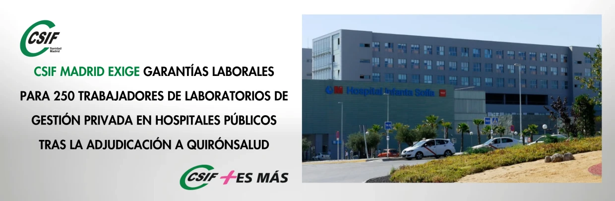CSIF Madrid exige garantías laborales para 250 trabajadores de laboratorios de gestión privada en hospitales públicos tras la adjudicación a Quirónsalud