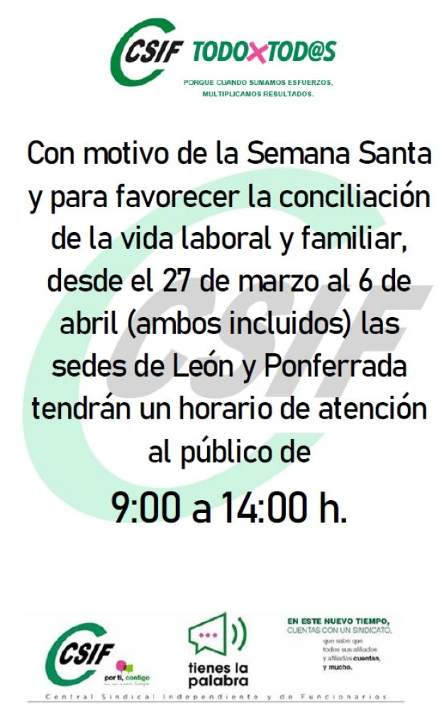 Horario de las Sedes de León y Ponferrada