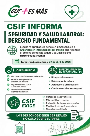 CSIF valora que España refuerce la SST como derecho fundamental tras la adhesión al Convenio 191 de la OIT y exige medidas reales para hacerlo efectivo.