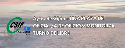 Ayto. de Gijón.- UNA PLAZA DE OFICIAL/A DE OFICIOS: MONITOR/A TURNO DE LIBRE