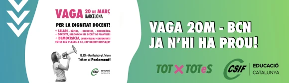 CSIF dona suport a les mobilitzacions docents i participarà en la concentració unitària del 20 de març a Barcelona