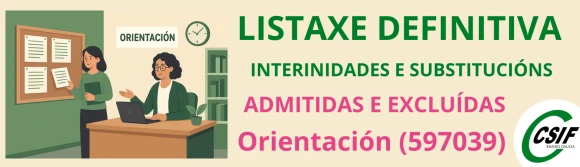 Listaxe definitiva de persoas admitidas e excluídas para interinidades e substitucións no curso 2025/2026 do corpo de mestres, Orientación (597039)