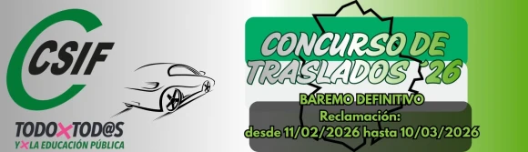 Concurso Traslados 2025-2026: Baremo definitivo 10/02/2026