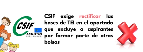 CSIF exige rectificar las bases de TEI en el apartado que excluye a aspirantes por formar parte de otras bolsas