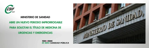 Ministerio de Sanidad abre un nuevo periodo improrrogable para solicitar el Título de Medicina de Urgencias y Emergencias