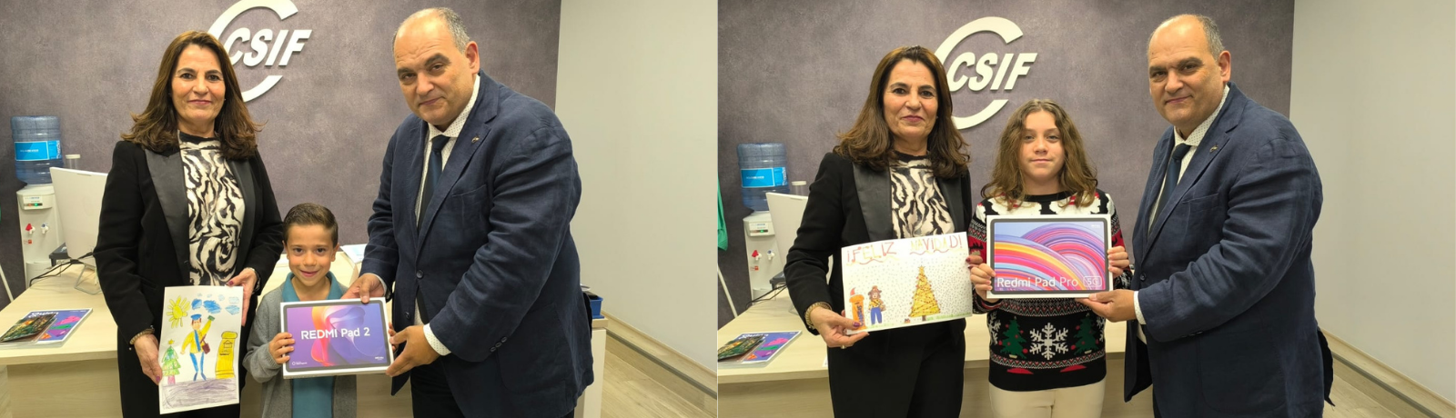 El presidente de CSIF Málaga, Francisco J. Domínguez, y la responsable del sector EPE en dicha provincia, Julia Gómez, han sido los encargados de entregar a los ganadores una tablet como obsequio por la distinción recibida.