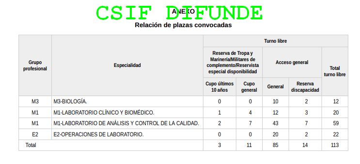 Total 113 plazas