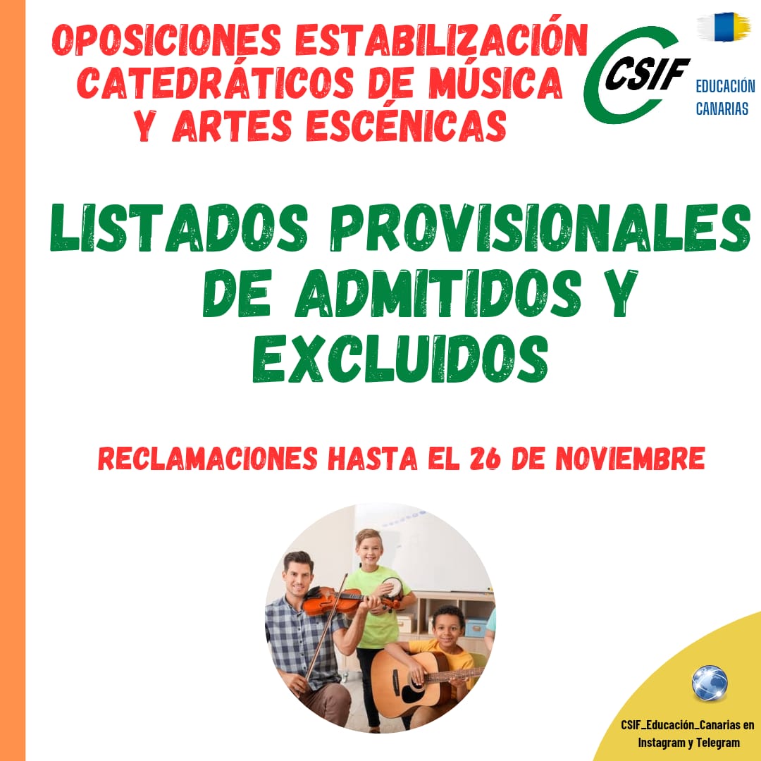 OPOSICIONES DE ESTABILIZACIÓN DEL CUERPO DE CATEDRÁTICOS DE MÚSICA Y ARTES ESCÉNICAS. LISTADOS PROVISIONALES DE ADMITIDOS Y EXCLUIDOS.