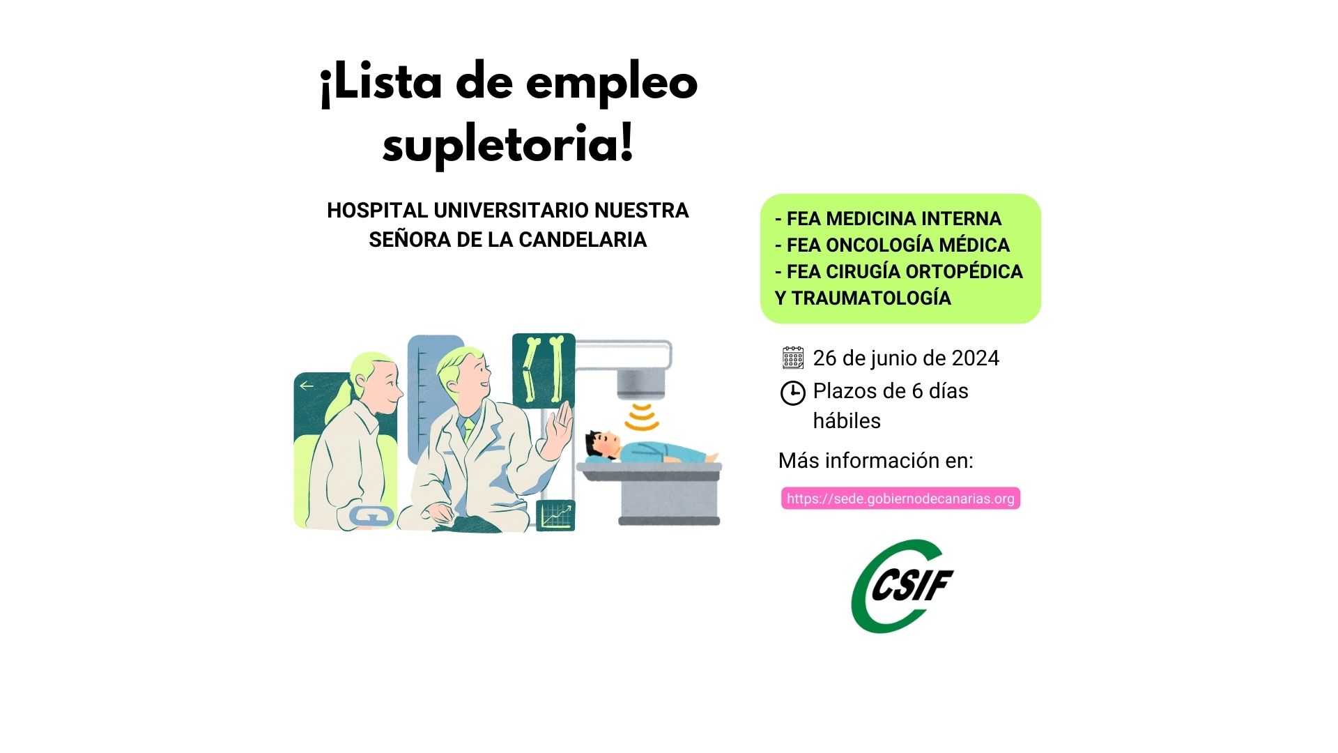 Convocatoria de proceso selectivo para la constitución de LISTA DE EMPLEO SUPLETORIA (Hospital Universitario Nuestra Señora de Candelaria)