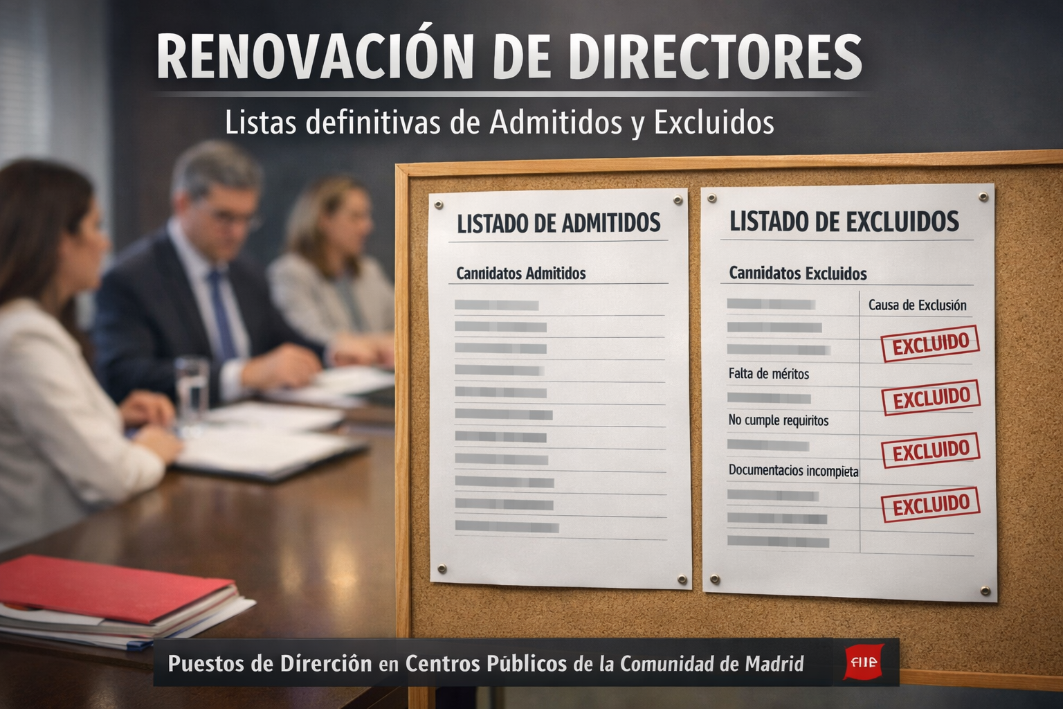Se aprueban los listados definitivos de candidatos admitidos y excluidos, con la causa de exclusión, para el procedimiento de renovación del puesto de director de los centros docentes públicos no universitarios de la Comunidad de Madrid, convocado por Resolución de 25 de noviembre de 2025.