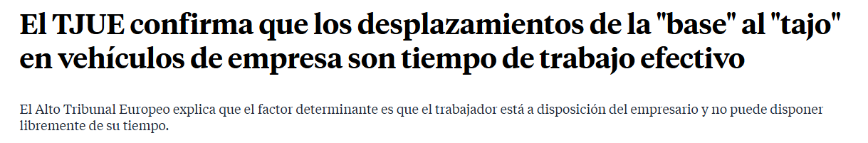 CSIF Madrid Empresa Privada Informa: El TJUE confirma que los desplazamientos de la "base" al "tajo" en vehículos de empresa son tiempo de trabajo efectivo