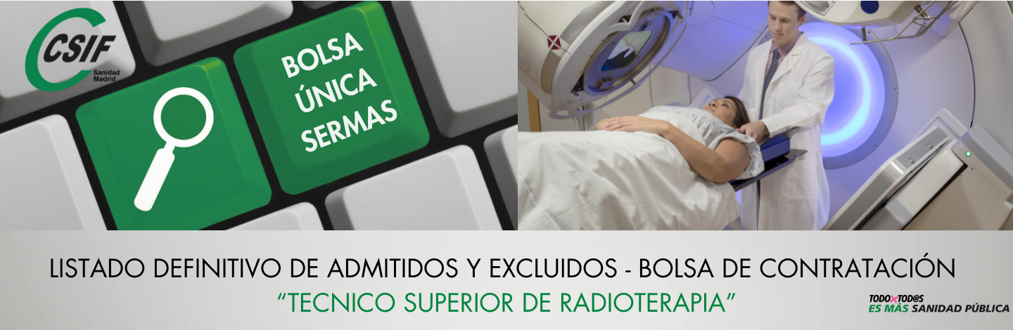 Podrás acceder al listado definitivo por orden de puntuación (Anexo I) y alfabético (Anexo II) de los aspirantes admitidos a la bolsa única para la contratación de personal temporal en la categoría Técnico Superior en Radioterapia , así como los excluidos con causa de exclusión (Anexo III).