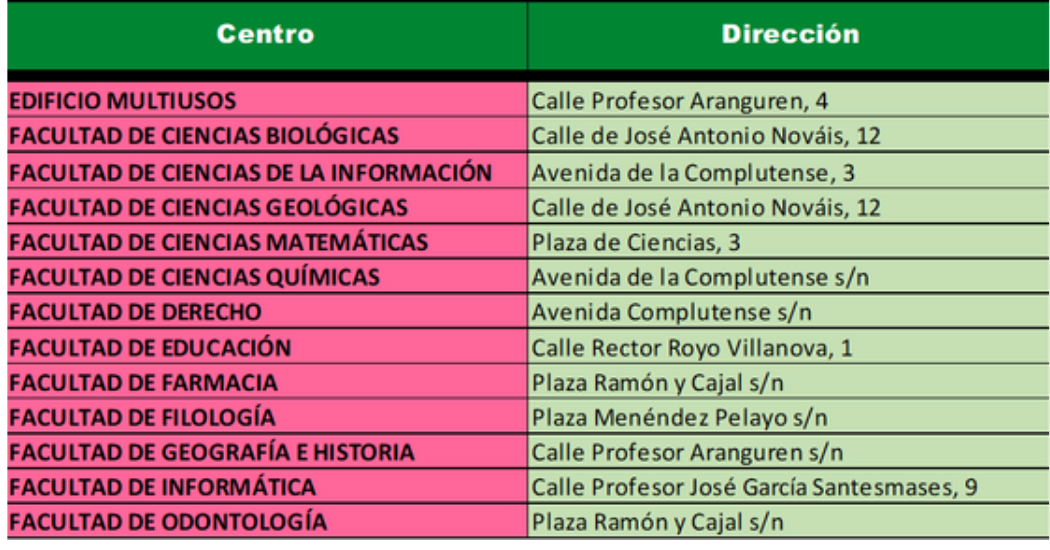 Con llamamiento único a las 09:30 horas, en las siguientes Facultades de la Universidad Complutense de Madrid (Campus de Moncloa/Ciudad Universitaria).