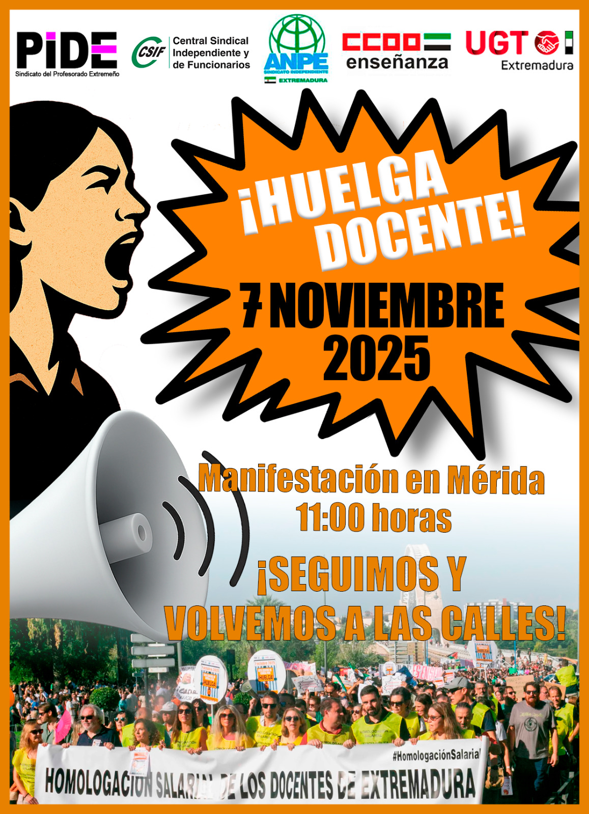 ¡HUELGA EDUCATIVA EL 7 DE NOVIEMBRE POR LA HOMOLOGACIÓN SALARIAL DE LOS DOCENTES EXTREMEÑOS!