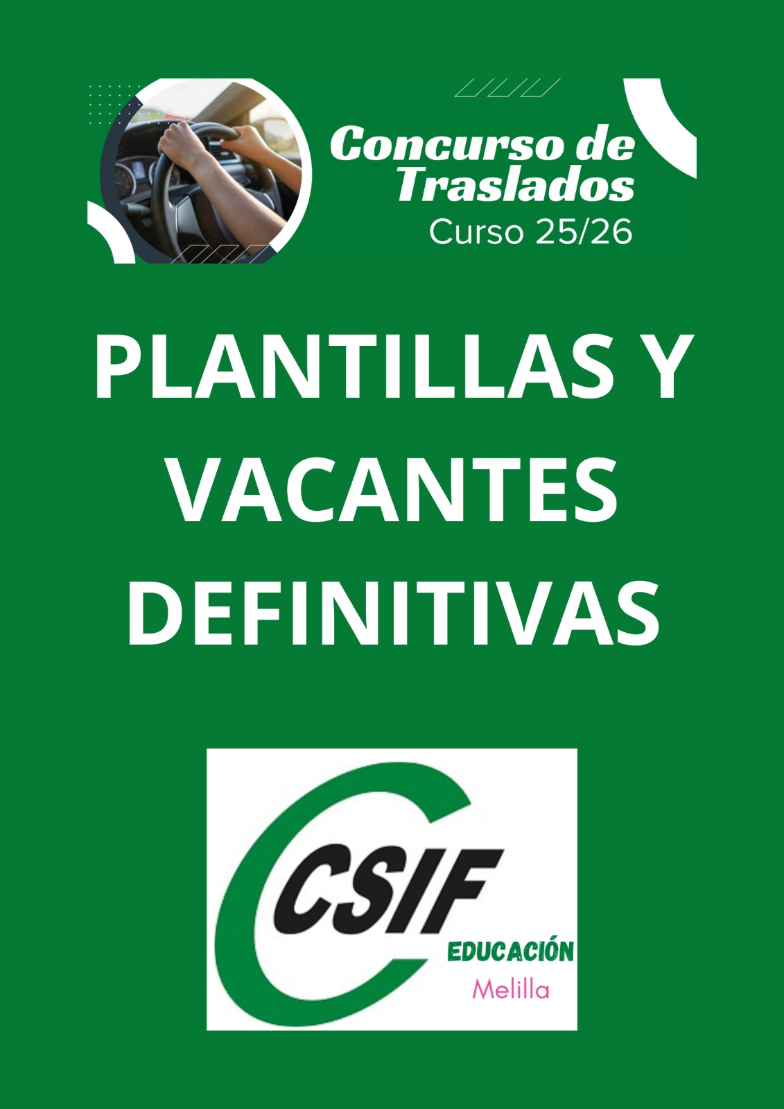 CONCURSO DE TRASLADOS MAESTROS Y OTROS CUERPOS CONVOCATORIA 2025-26. RESOLUCION Y PLANTILLAS DEFINITIVAS.