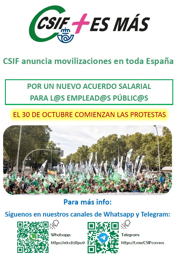 Las empresas públicas, en las que CSIF tiene representación, también se unirán mañana 30 de octubre a las protestas en toda España