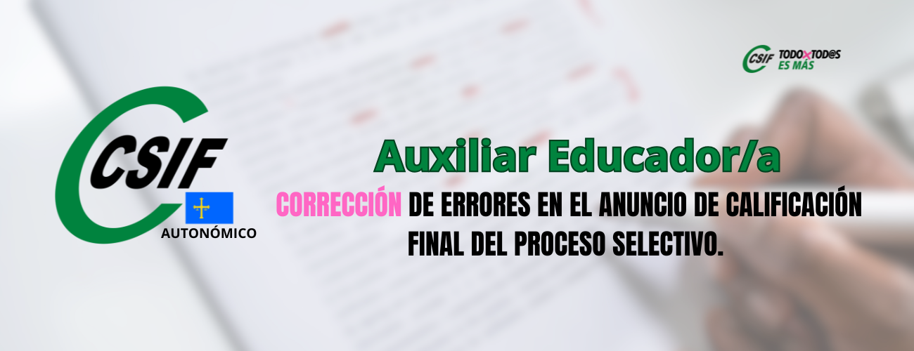 Auxiliar Educador/a: CORRECCIÓN DE ERRORES EN EL ANUNCIO DE CALIFICACIÓN FINAL DEL PROCESO SELECTIVO