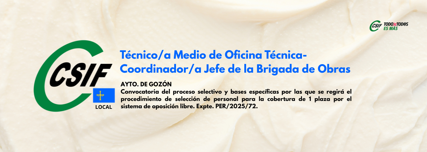 Ayto. de Gozón.- Técnico/a Medio de Oficina Técnica-Coordinador/a Jefe de la Brigada de Obras. 1 plaza.