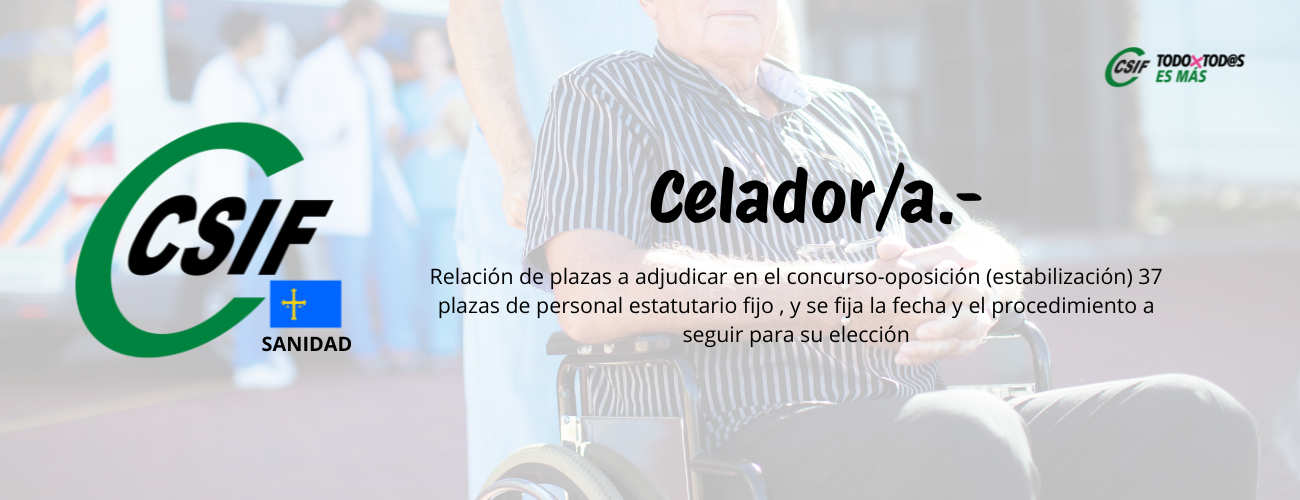 Celador/a.- Relación de plazas a adjudicar en el concurso-oposición (estabilización) 37 plazas de personal estatutario fijo , y se fija la fecha y el procedimiento a seguir para su elección