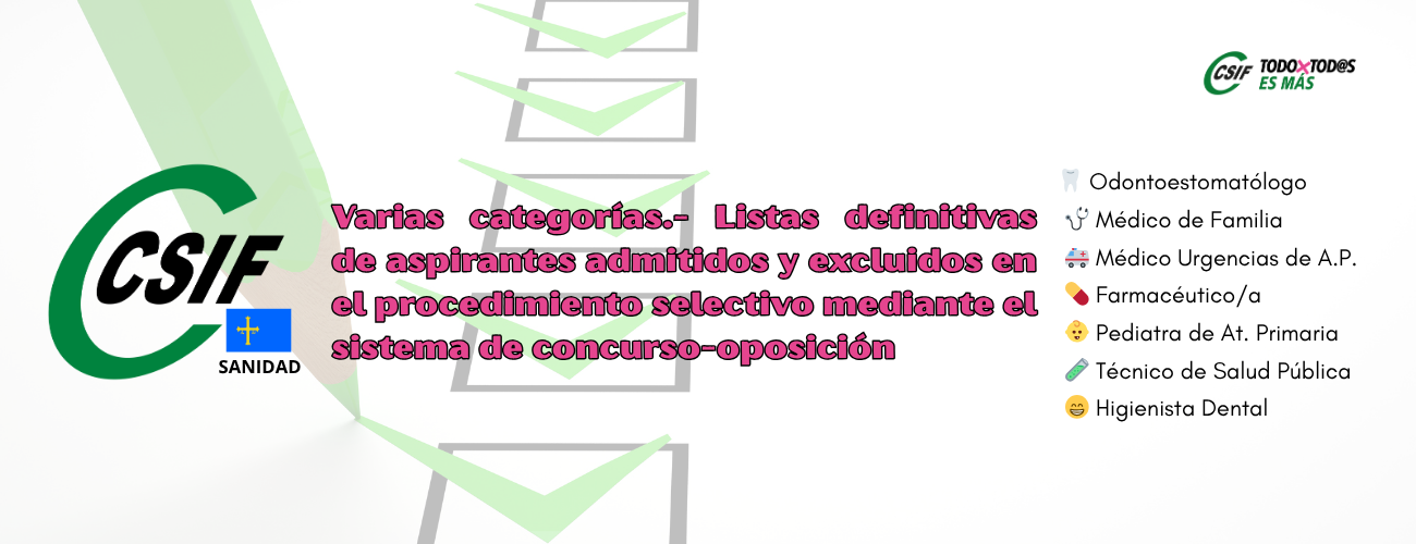 Varias categorías.- Listas definitivas de aspirantes admitidos y excluidos en el procedimiento selectivo mediante el sistema de concurso-oposición