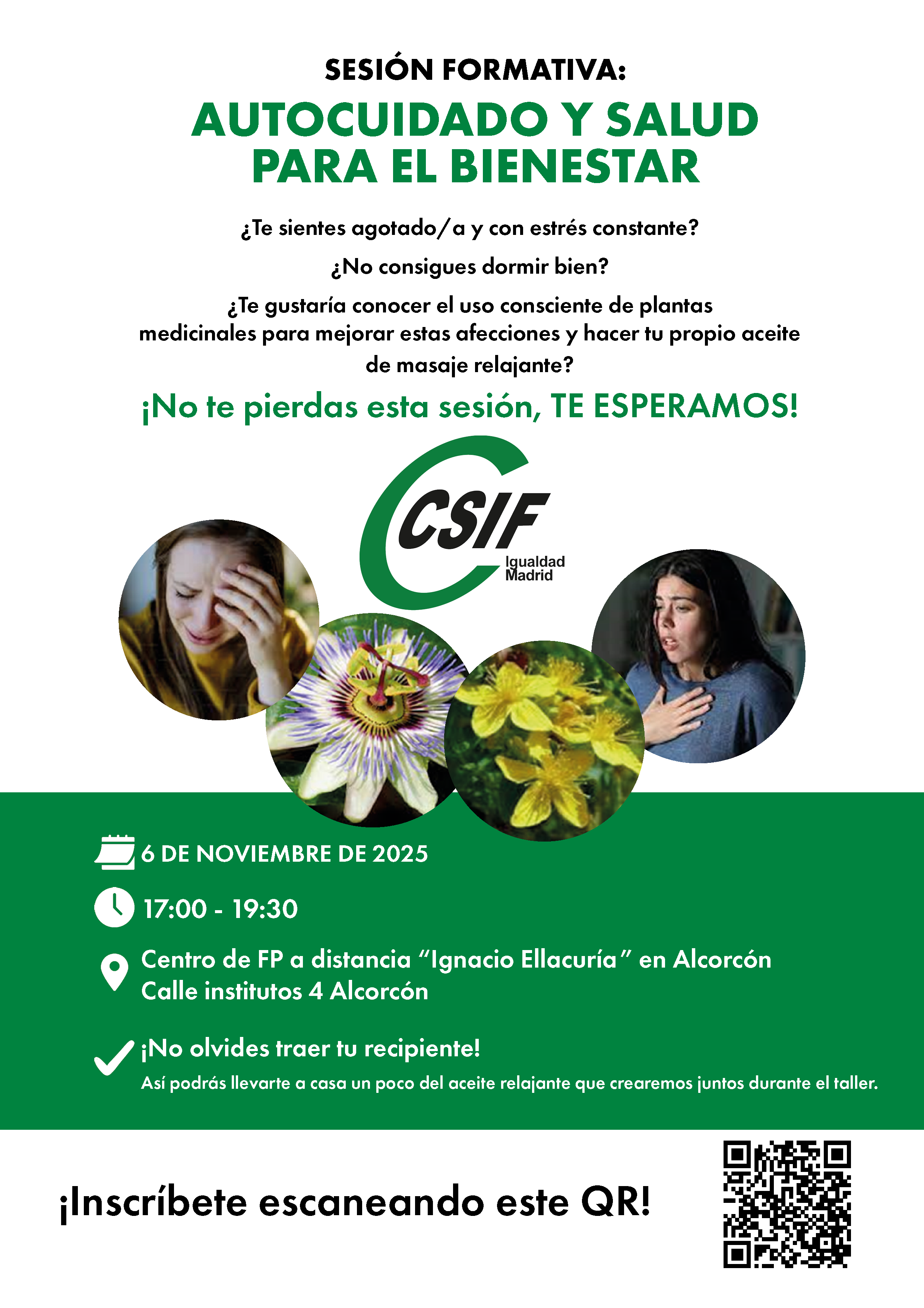 Te recomendamos traer un recipiente para llevarte a casa una pequeña cantidad del aceite relajante que prepararemos durante la actividad.