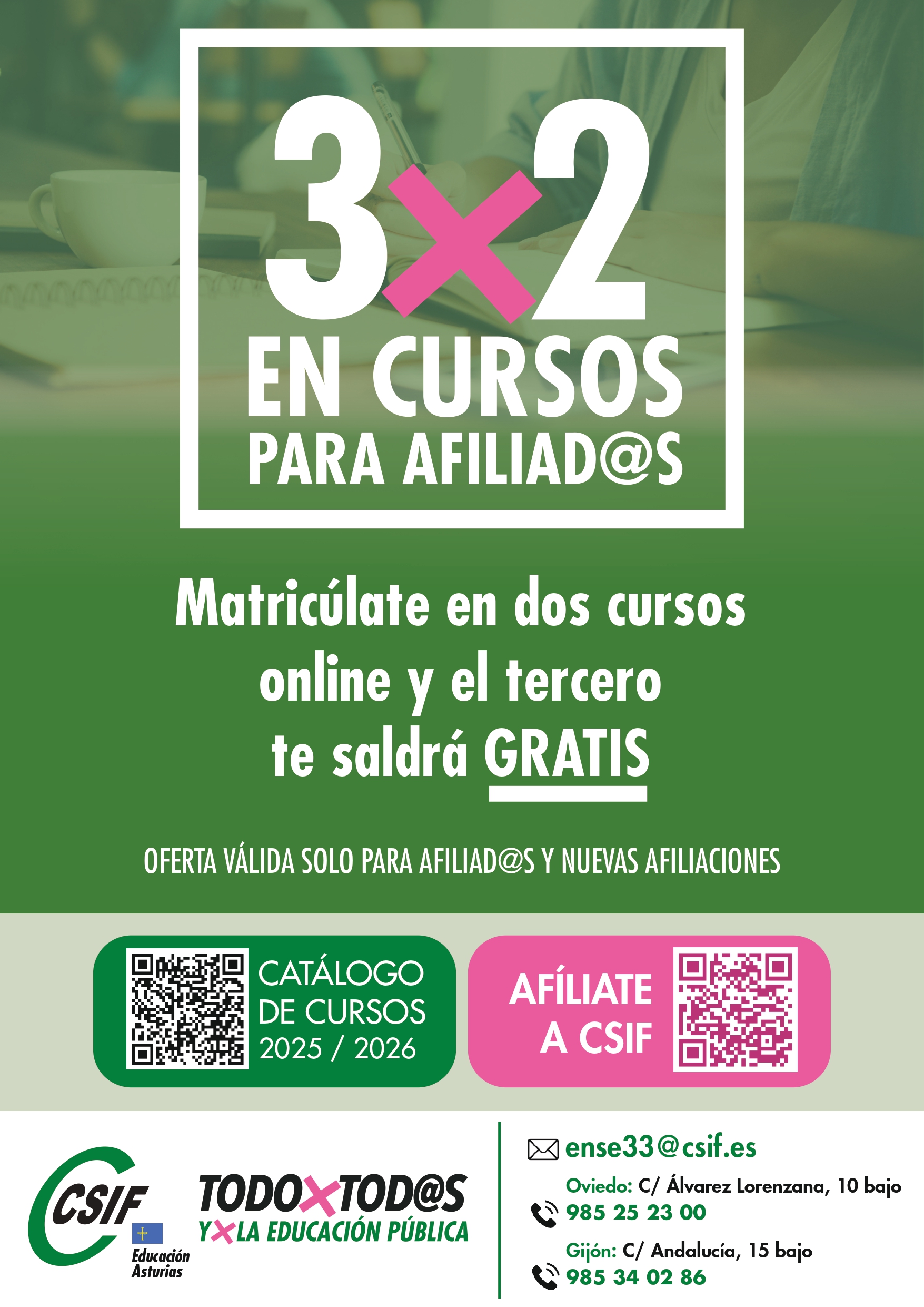 CSIF TE AYUDA: CURSOS ON LINE CAMPAÑA 3X2 AFILIADOS/AS CSIF