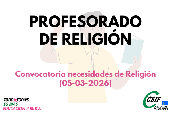 Profesorado Religión. Convocatoria necesidades de Religión (05-03-2026)