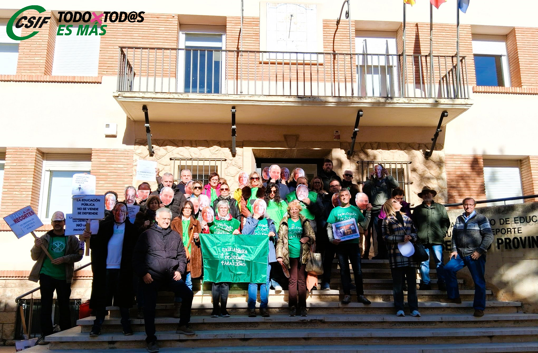 CSIF junto con la La Plataforma en Defensa de la Escuela Pública de Teruel se ha concentrado hoy martes, 11 de noviembre a las 11:00 horas en el Servicio Provincial de Educación de Teruel, para protestar contra los conciertos con centros privados cuando en los públicos no se cubren las plazas. Además, es un agravio comparativo entre la educación que se presta a los estudiantes en los centros de las grandes ciudades frente a los del medio rural.