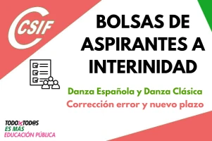Bolsas de aspirantes a interinidad. Convocatoria (0590-0592-0593-0594-0595-0597-0598). Corrección error y nuevo plazo