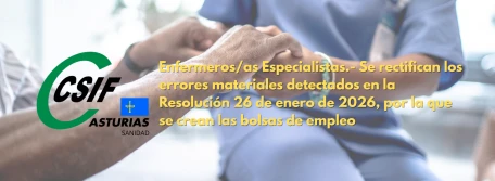 Enfermeros/as Especialistas.- Se rectifican los errores materiales detectados en la Resolución 26 de enero de 2026, por la que se crean las bolsas de empleo