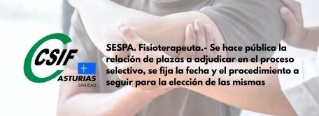SESPA. Fisioterapeuta.- Se hace pública la relación de plazas a adjudicar en el proceso selectivo, se fija la fecha y el procedimiento a seguir para la elección de las mismas
