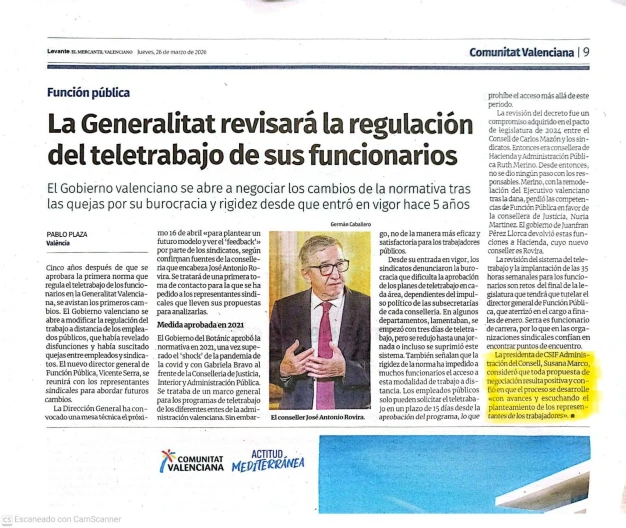 LA GENERALITAT REVISARÁ LA REGULACIÓN DEL TELETRABAJO DE SUS FUNCIONARIOS