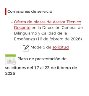 OFERTA DE 15 PLAZAS DE ASESORES TÉCNICO DOCENTES TIPO B EN COMISIÓN DE SERVICIOS EN LA DIRECCIÓN GENERAL DE BILINGÜISMO Y CALIDAD DE LA ENSEÑANZA PARA FUNCIONARIOS DE CARRERA DE CUERPOS DOCENTES DE ENSEÑANZAS NO UNIVERSITARIAS CON MOTIVO DE LA EJECUCIÓN DEL PROGRAMA «CÓDIGO ESCUELA 4.0».